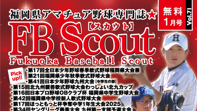 福岡県アマチュア野球のフリーペーパーFBスカウト2026年1月号 Vol.71 設置店舗はこちらから 【大会記事】第17回全日本少年野球春季軟式野球福岡県大会兼第21回福岡県少年秋季軟式野球大会第41回日本少年野球九州大会【中学生の部】第15回北九州親善軟式野球大会わっしょい北九カップ第16回日本プロ野球OBクラブ杯 福岡県中学生野球大会福岡… -